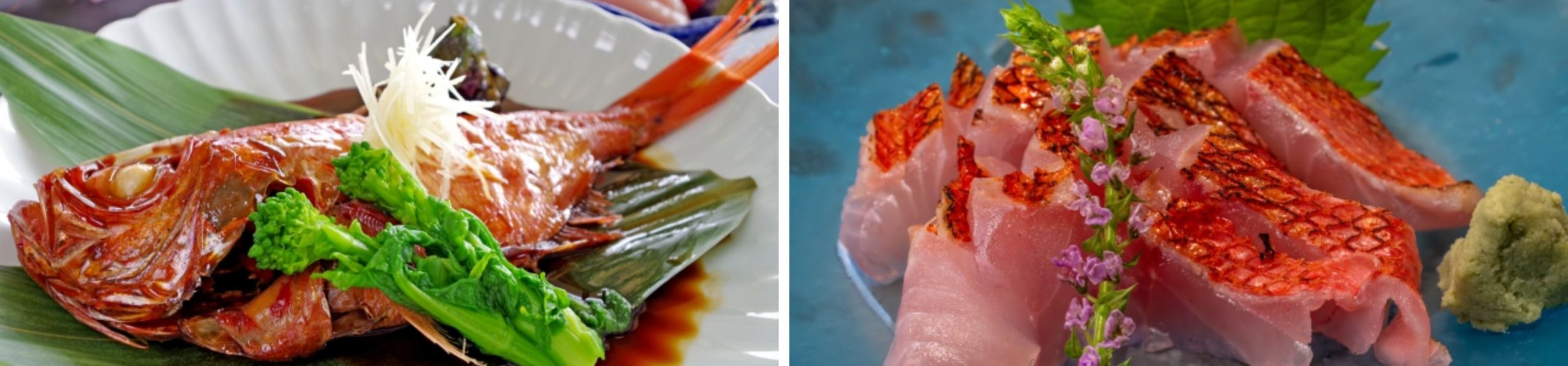 This region is synonymous with “kinmedai“, the golden red snapper, especially around Shimoda and Inatori.
