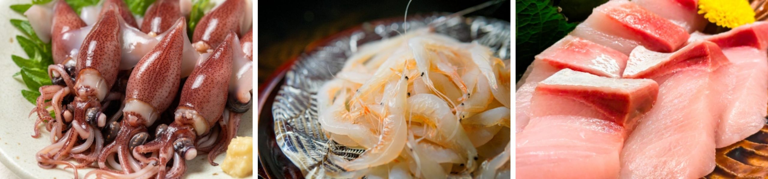 firefly squid glowing in the spring, sweet white shrimp in summer, and the iconic cold yellowtail in winter.